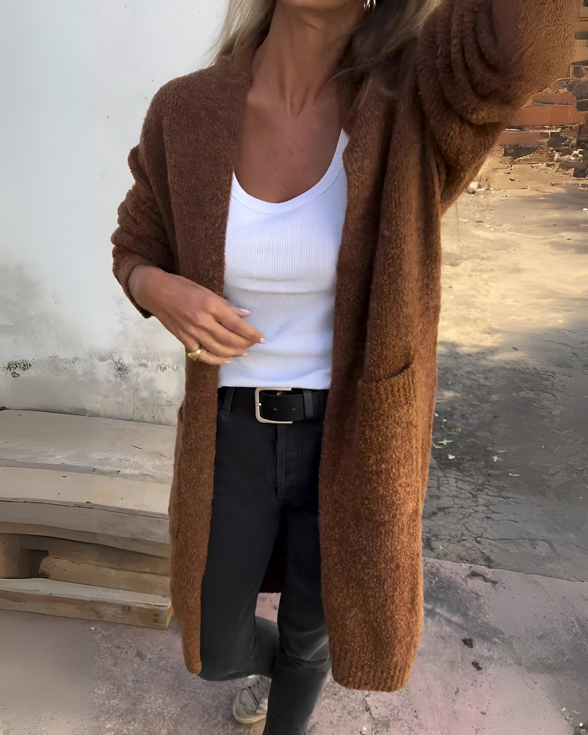 Stay effortlessly stylish and comfortable with the casual knit pocketed cardigan your go-to layer for everyday outfits.